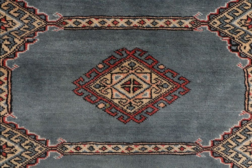 The primary color in this handmade rug is Grey.