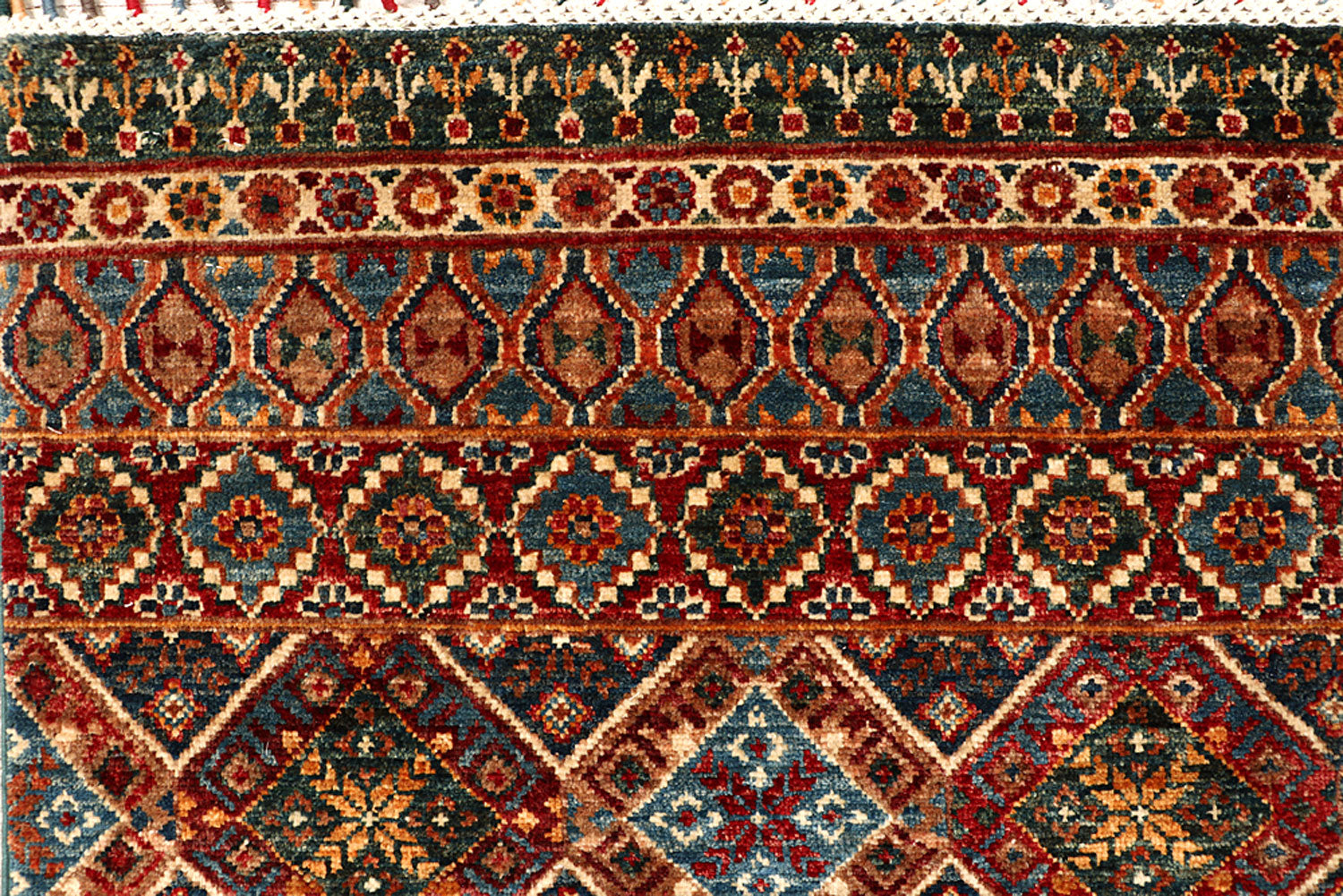 This Afghan Kazak design rug is hand-knotted with Wool on Cotton. The primary color in this handmade rug is Multi Colored. This rug is New and in Perfect condition. The measurements for this rug are: 6 feet 7 inches wide by 9 feet 9 inches long. This rug is currently Available and will ship within 2 business days. Free International Shipping & 14-Day Returns. This rug's SKU # is 68192.