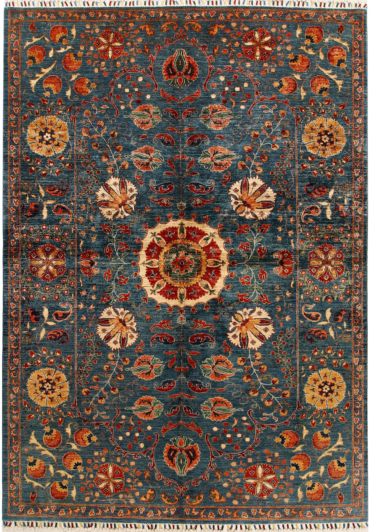 This Afghan Kazak design rug is hand-knotted with Wool on Cotton. The primary color in this handmade rug is Multi Colored. This rug is New and in Perfect condition. The measurements for this rug are: 6 feet 8 inches wide by 9 feet 5 inches long. This rug is currently Available and will ship within 2 business days. Free International Shipping & 14-Day Returns. This rug's SKU # is 68186.