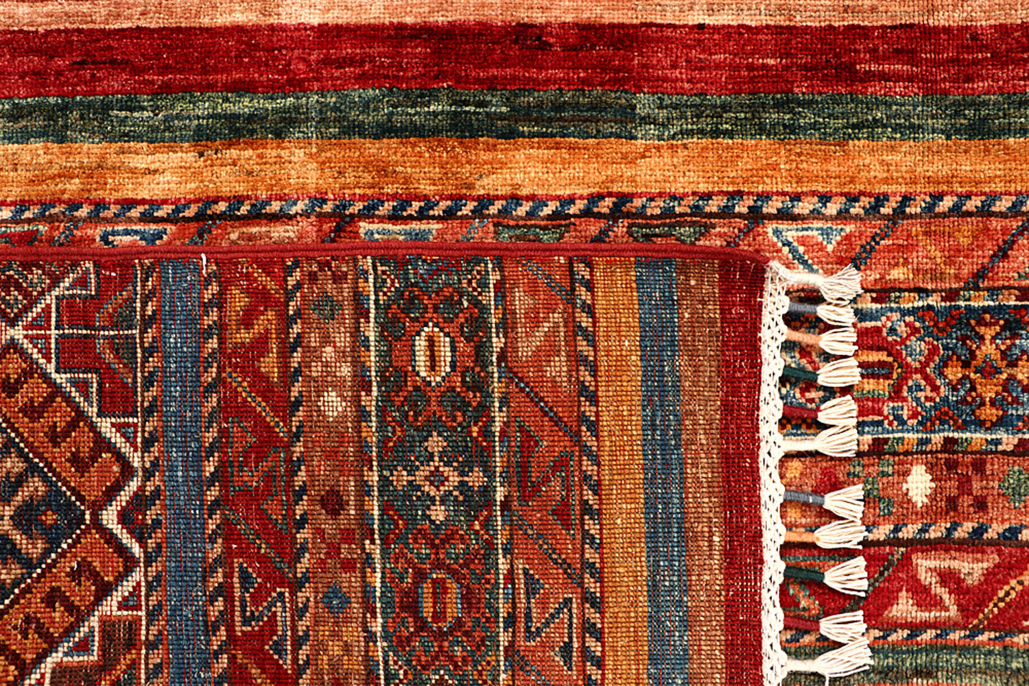 This Afghan Kazak design rug is hand-knotted with Wool on Cotton. The primary color in this handmade rug is Multi Colored. This rug is New and in Perfect condition. The measurements for this rug are: 7 feet 0 inches wide by 10 feet 4 inches long. This rug is currently Available and will ship within 2 business days. Free International Shipping & 14-Day Returns. This rug's SKU # is 68188.