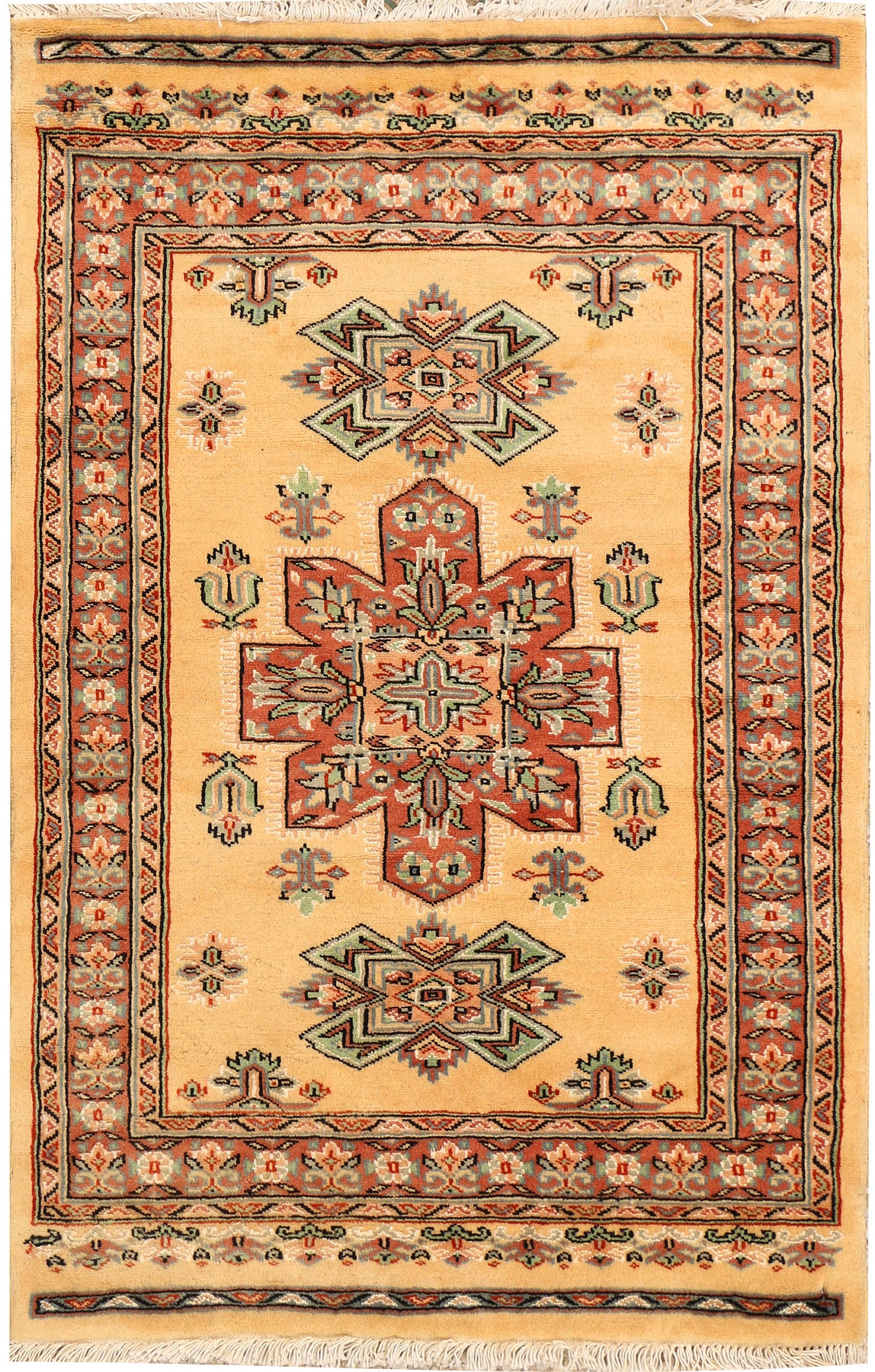 Very beautiful handmade/hand-knotted Beige/Gold Oriental Caucasian from Pakistan