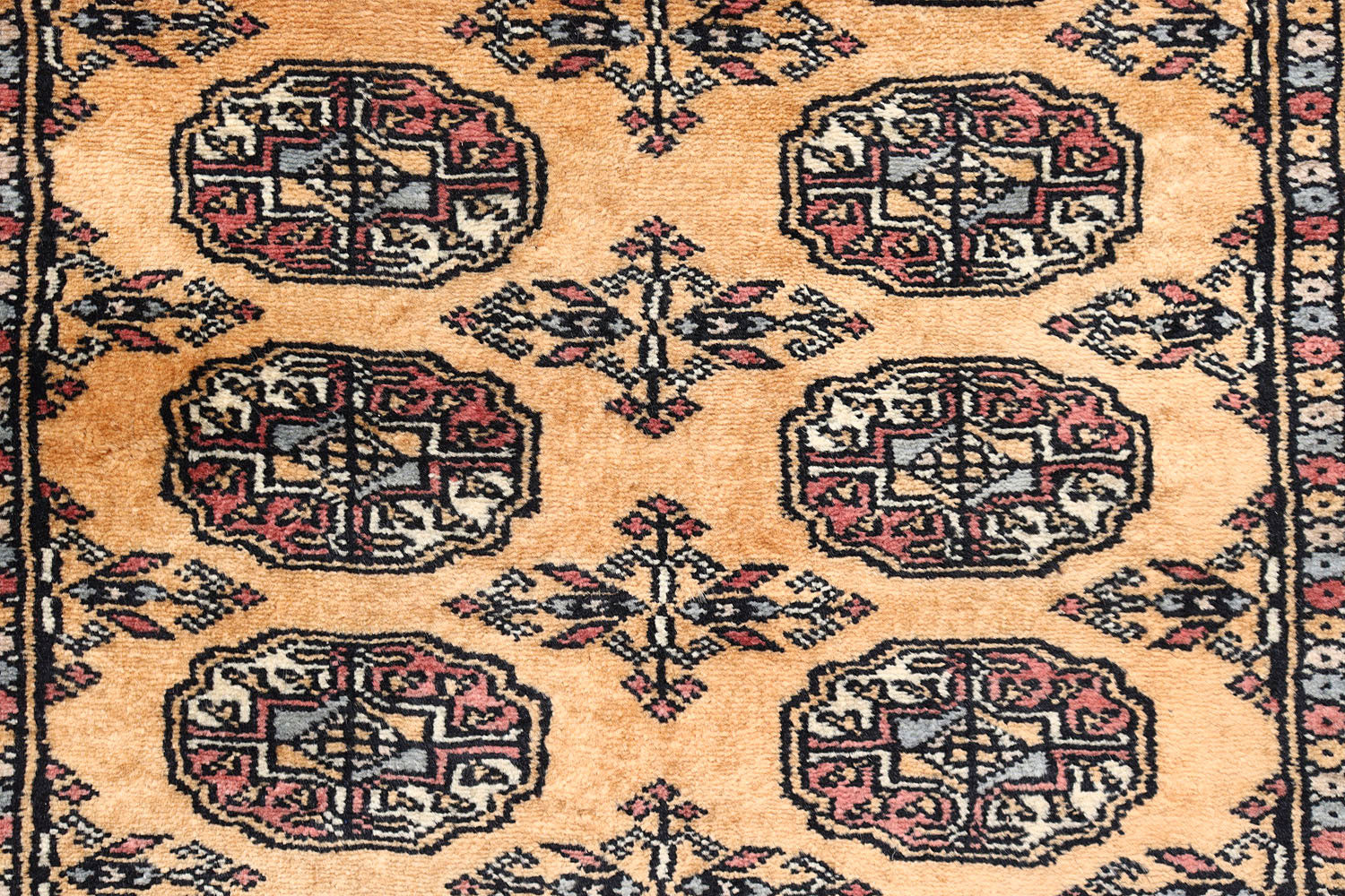 Salor Bokharas rugs are believed to be originally made by the Salor tribe who lived just north of the Northern Afghan border. These rugs are beautiful and known by red shades with a symmetrical row of octagons. Every octagon generally includes a smaller octagon or diamond within its border. The interior sides of each octagon generally feature one to three flowers.