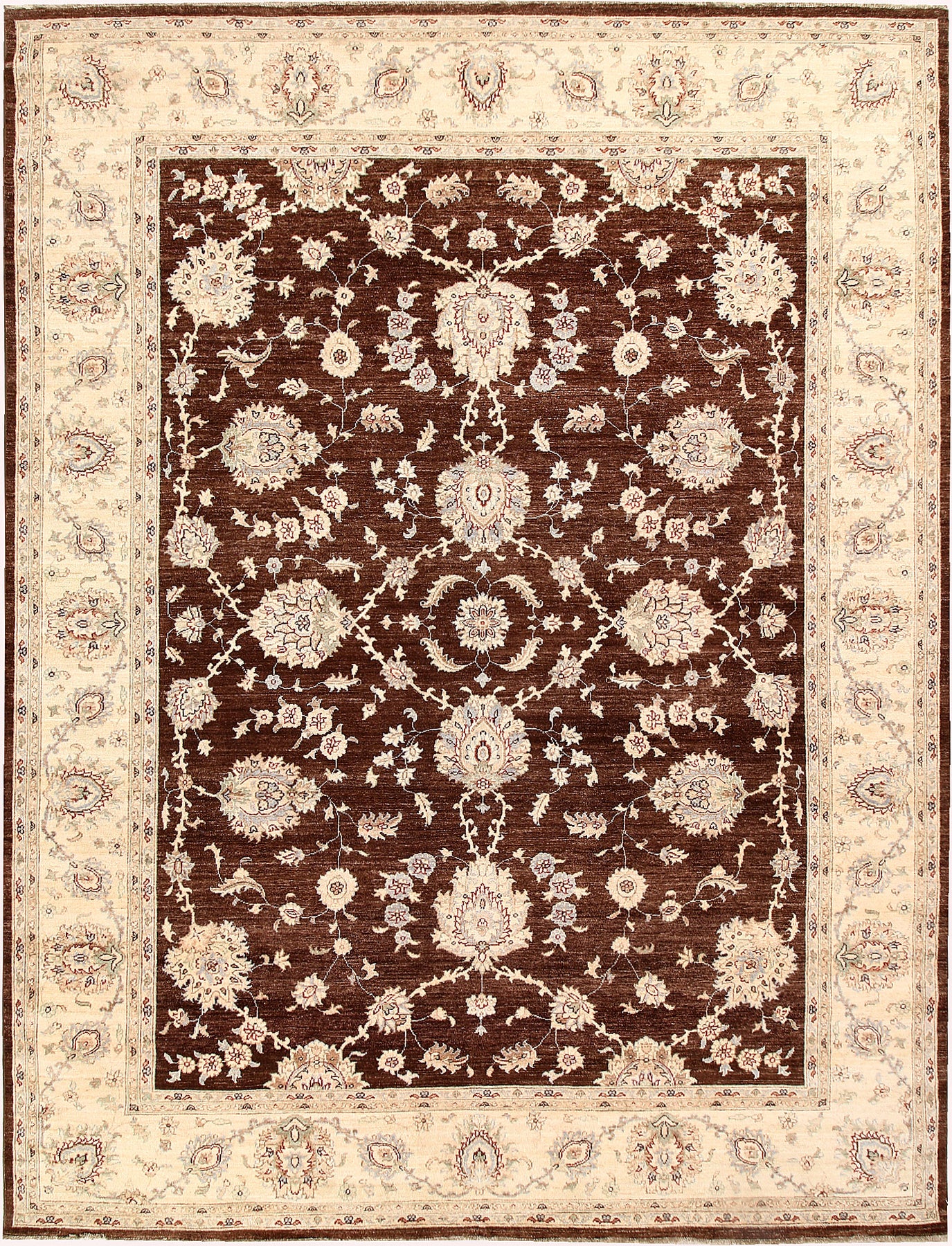 A Beautiful and versatile Oriental rug to decorate your home. This Ziegler rug is durable and a good investment. It is in perfect condition. The traditional hand-knotted rug is made up of wool, and measures 8' 11" x 11' 9". It is a rectangle shape rug. The primary color is brown . The collection has the variety of Ziegler carpets and runners. It is currently in stock. Available in geometric pattern and floral design. Free delivery from 4-6 business days.