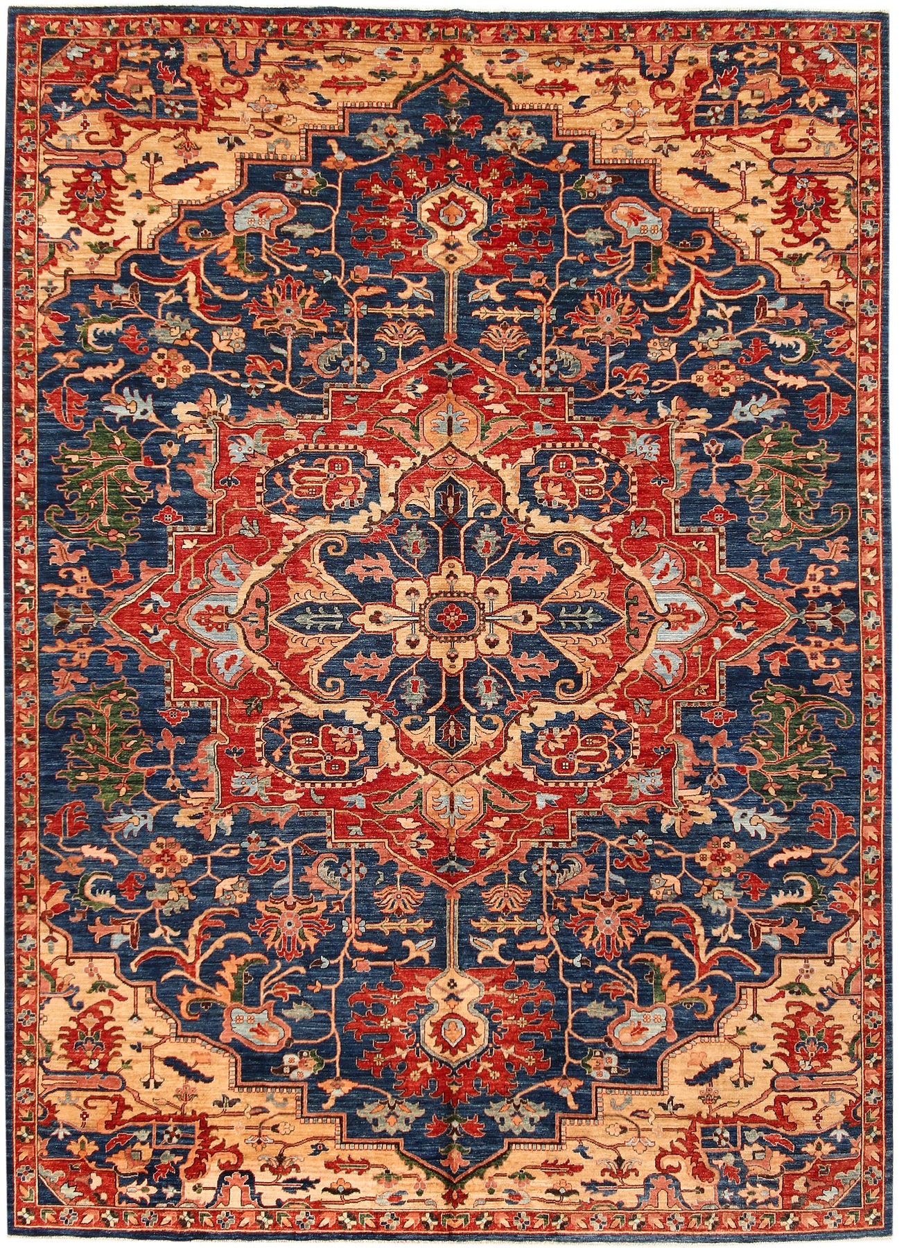 The Steel Blue Ziegler rug is hand-knotted and made from wool. This beautiful rug is perfect for small spaces and large areas. The size of this rug is 10' x 13' 7. This beautiful rug provides unique flooring because of its beautiful pattern and its wool construction. This handmade Ziegler rug is versatile enough to match any decor, both in living rooms and bedrooms. The rug's unique geometric patterns make it an excellent flooring choice for all rooms of the house. This beautiful rug is durable and exquisite in design. If you want to add something pleasing to your home, Alrug is the best place to find your next Ziegler rug.