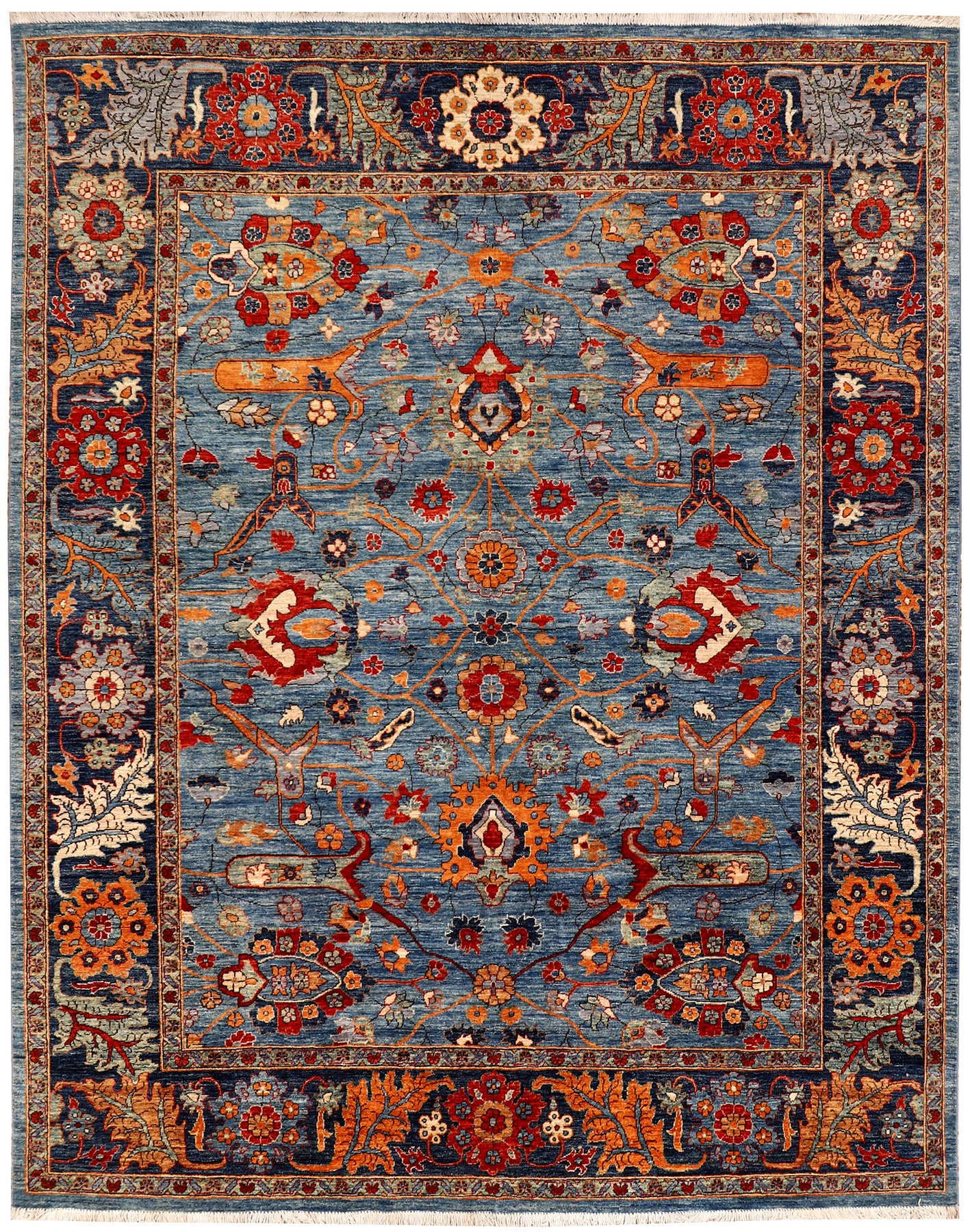 No need to travel to Afghanistan or Pakistan to buy an original handmade Ziegler rug! At our online store, you can order from our collection of exquisitely handwoven online Steel Blue 8' x 10' Ziegler rugs on sale and have them delivered anywhere in the world for free. And that too without compromising on quality.
