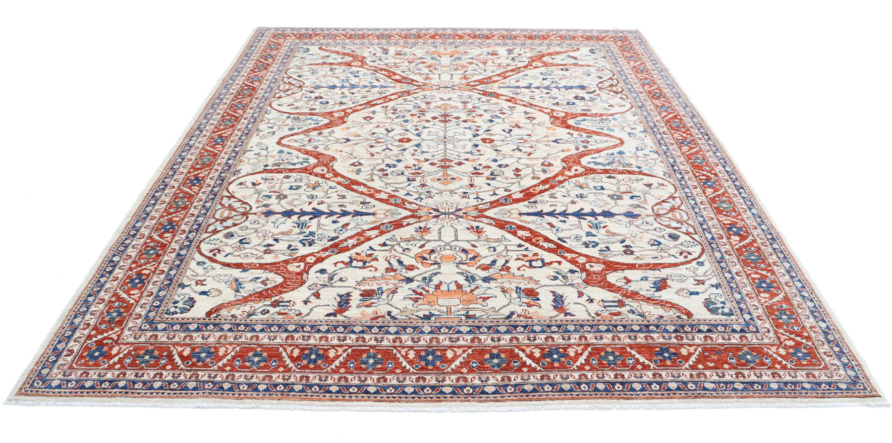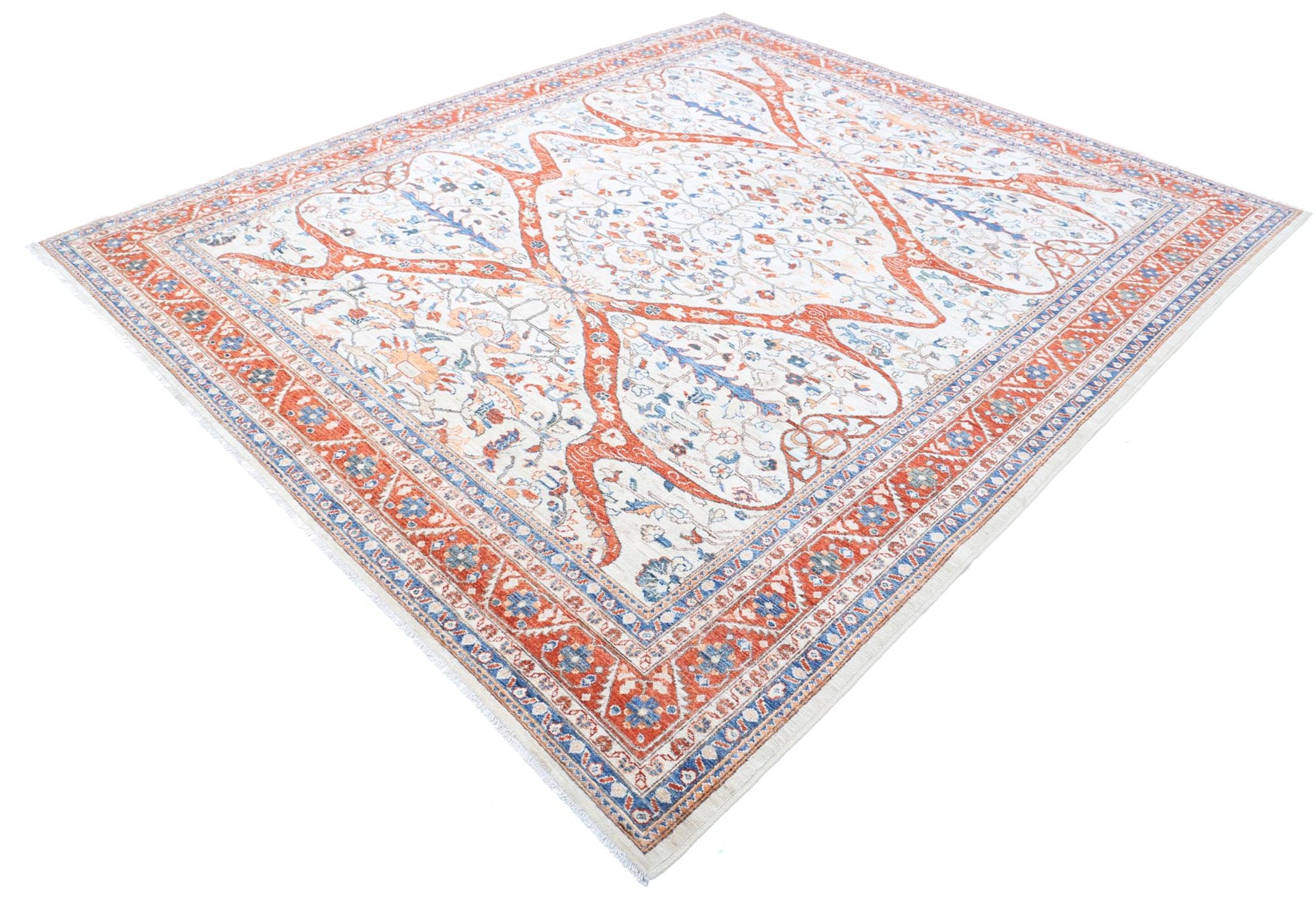 The traditional Ziegler rug is hand-knotted and made from wool. This beautiful rug is perfect for small spaces and large areas. The size of this rug is 8’ 2″ x 9’ 8″. This beautiful rug provides unique flooring because of its beautiful pattern and its wool construction. This handmade rug is versatile enough to match any decor, both in living rooms and bedrooms. The rug's unique geometric patterns make it an excellent flooring choice for all rooms of the house. This beautiful Ziegler rug is durable and Ziegler in design. If you want to add something pleasing to your home, Alrug is the best place to find your next Ziegler rug.