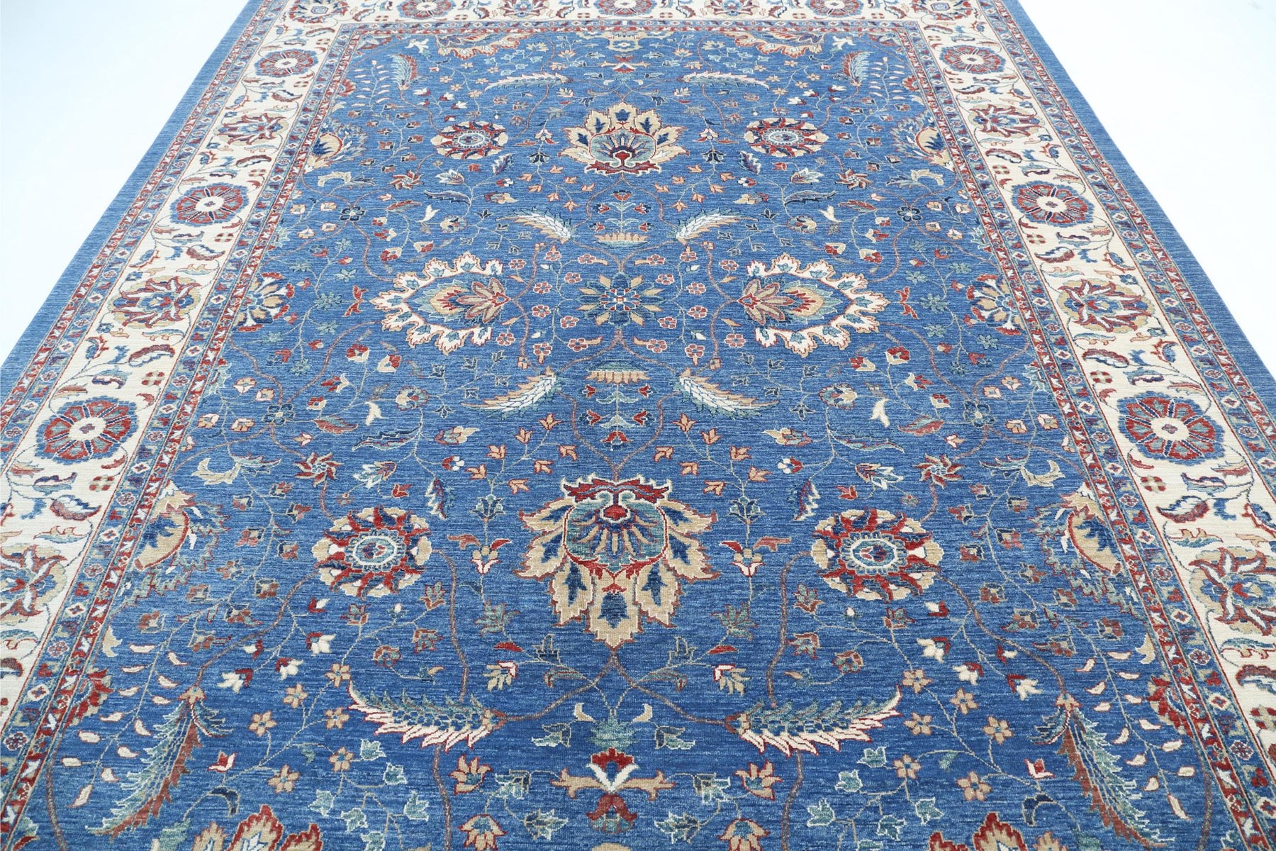 The beauty of a Ziegler rug will enhance the appeal of your home and add elegance to your space. This piece of art was created by our talented artisans with a beautiful blend of vibrant colour palettes and a versatile style that captures an overwhelming essence. This beautiful Ziegler rug comes in an optimal size of 9’ 0″ x 11’ 9″. It can be placed in any location, so it is easily accessible. As with all rugs, handmade rug needs to be cleaned regularly. Use low-pressure vacuuming and don't use the beater bar. Happy Shopping!